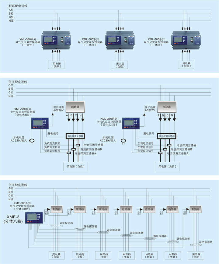 電氣火災(zāi)監(jiān)控探測(cè)器安裝示意圖(單相與三相兼容)