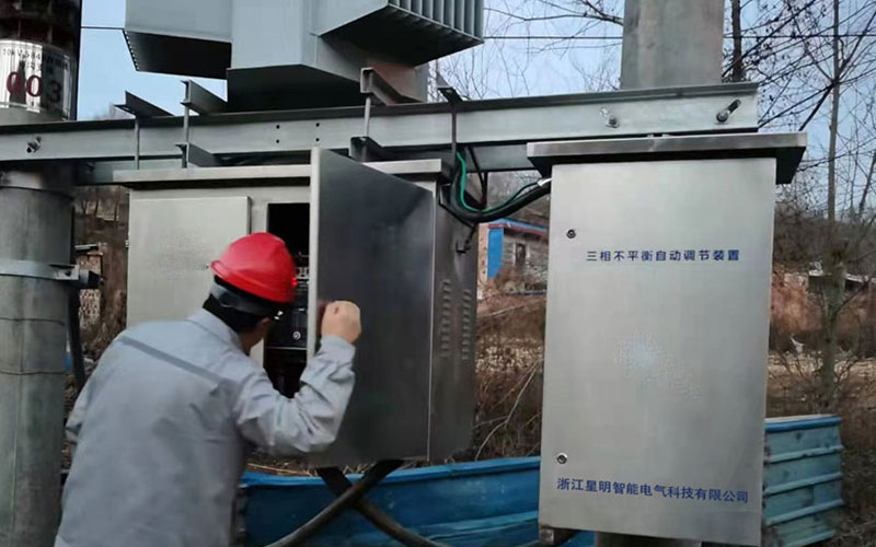 三相負(fù)荷不平衡自動(dòng)調(diào)節(jié)裝置系統(tǒng)是由一臺(tái)主機(jī)及多臺(tái)分機(jī)(15~20臺(tái))組成,應(yīng)用于配電變壓器低壓側(cè)(220/380V),主機(jī)及數(shù)據(jù)采集裝置安裝于配電變壓器低壓側(cè),各分機(jī)分別安裝于終端用戶表前側(cè),通過(guò)無(wú)線通訊方式組成調(diào)控網(wǎng)絡(luò),系統(tǒng)主機(jī)采集配變各相負(fù)荷實(shí)時(shí)參數(shù),經(jīng)計(jì)算后以無(wú)線通訊方式控制各分機(jī),各分機(jī)采用專用換相開(kāi)關(guān)組件,將所接入的用戶負(fù)荷實(shí)時(shí)切換到合適的相別上,使配變低壓側(cè)負(fù)荷基本保持在平衡狀態(tài),從而達(dá)到減少線路損耗、變壓器損耗和延長(zhǎng)變壓器使用壽命,提高供電質(zhì)量的目的。