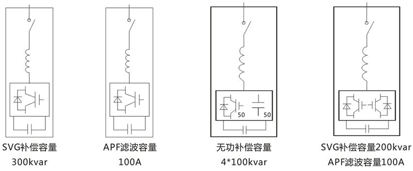 1、SVG+C的配合中,SVG可選50kvar、lOOkvar,C選取同等規(guī)格。50kvar SVG功率模塊同50kvar電容組成100kvarXMPQ MSVGC模塊,實現(xiàn)O~100kvar無級差補償,100kvar SVG功率模塊同100kvar電容組成00kvar XMPQ SVGC模塊,實現(xiàn)0~200kvar無級差補償。